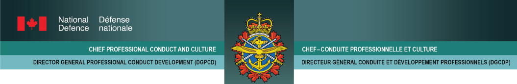 Cet atelier interactif d’une journée comprend divers scénarios, discussions et activités pratiques en petits groupes pour aider les militaires des FAC à acquérir et mettre en pratique des compétences visant à prévenir les inconduites sexuelles, à les reconnaître, de même qu’à soutenir et accompagner les victim