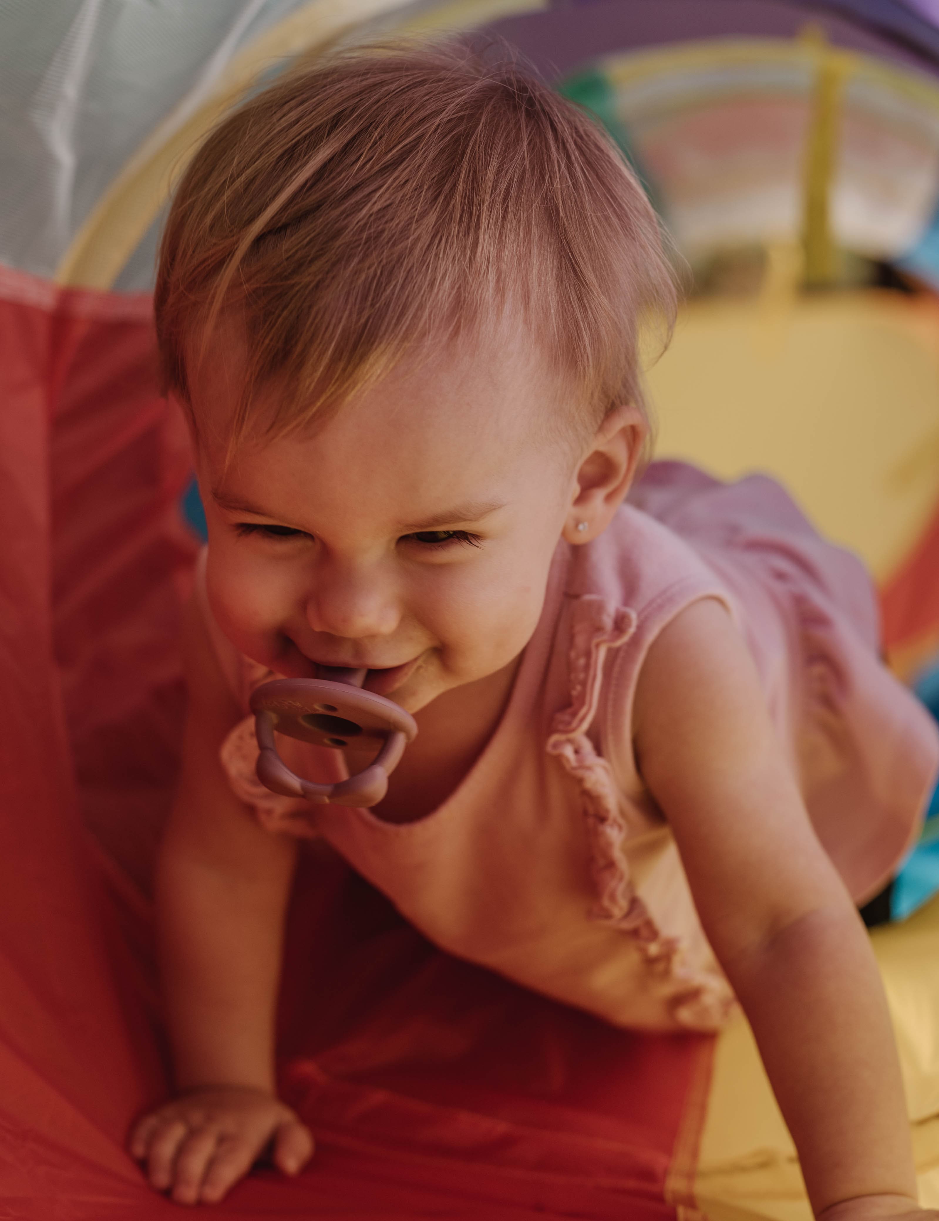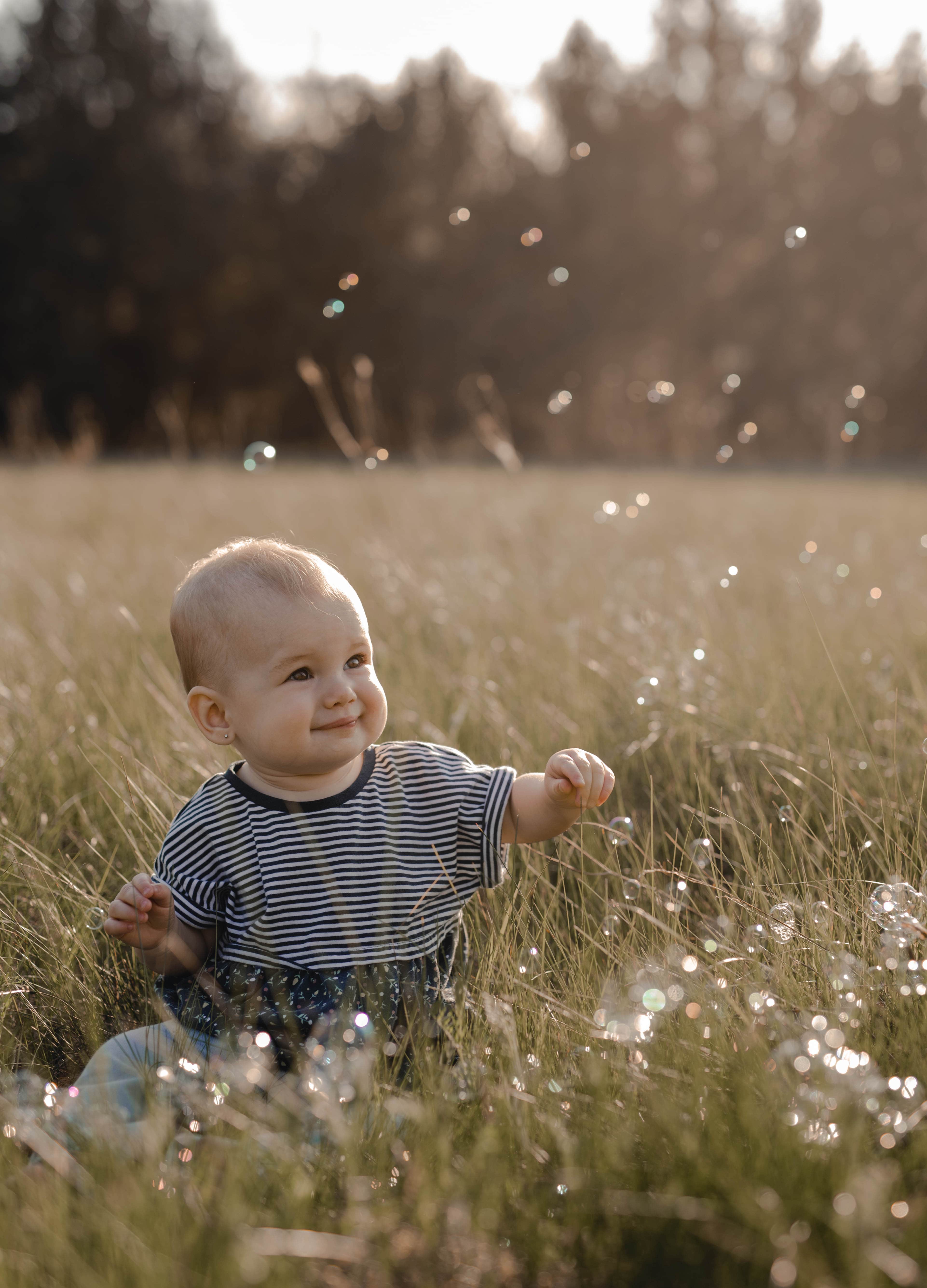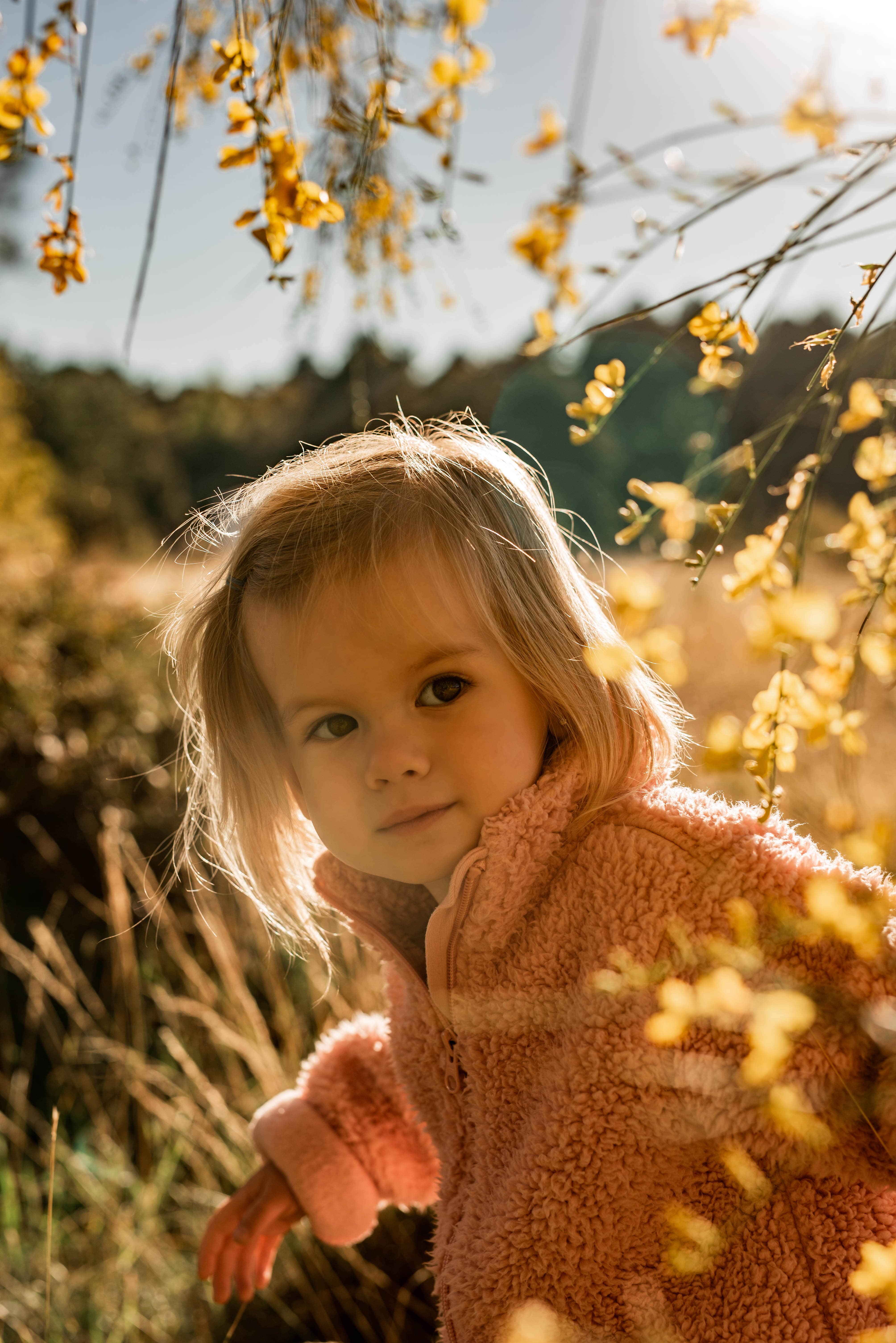Essayez de rechercher une lumière douce, pour éviter les ombres dures sur leur visage. Pour ce faire, recherchez les nuages ou l'ombre. Vous pouvez également essayer de prendre vos photos lorsque la lumière est plus douce en raison de l'angle du soleil, c'est-à-dire juste avant ou pendant le lever du soleil et juste après ou pendant le coucher du soleil. Enfin, vous pouvez toujours faire preuve de créativité et utiliser un drap ou une feuille semi-transparente pour diffuser la lumière qui frappe votre enfant.