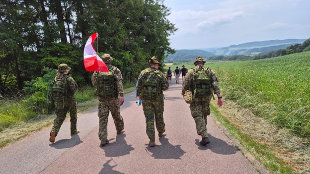 L'événement de validation final, La Marche Internationale de Diekirch au Luxembourg, a fourni le test ultime. Les membres ont dû marcher 80 km pendant le week-end, ce qui démontre bien leur capacité développée au cours des mois d’entrainement, soit la moitié de la distance à parcourir lors de l’épreuve de Nimègue. Contrairement au terrain plat attendu à Nimègue, Diekirch a mis les participants au défi avec des changements d'altitude abrupts et des collines difficiles, le tout aggravé par une intense vague de chaleur de début d'été qui a poussé la résilience et la préparation à la limite.