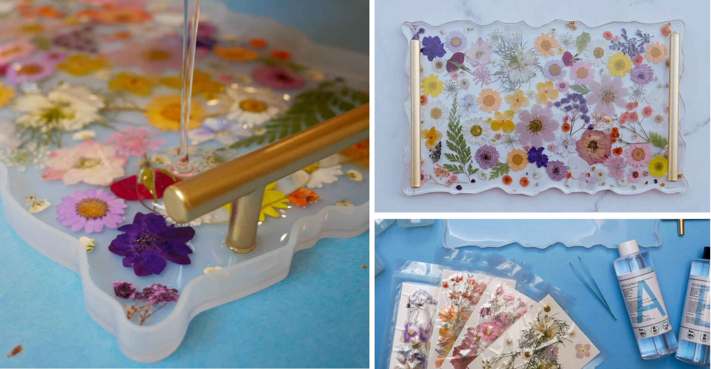 Ce qui est inclus : Votre kit comprend un moule, de la résine, des outils et des fleurs pressées (dont des coquelicots) pour donner vie au plateau de vos rêves. L'association de la résine et de la nature donnera à votre plateau de service un effet magique et magnifique, à la fois fonctionnel et élégant pour votre intérieur.