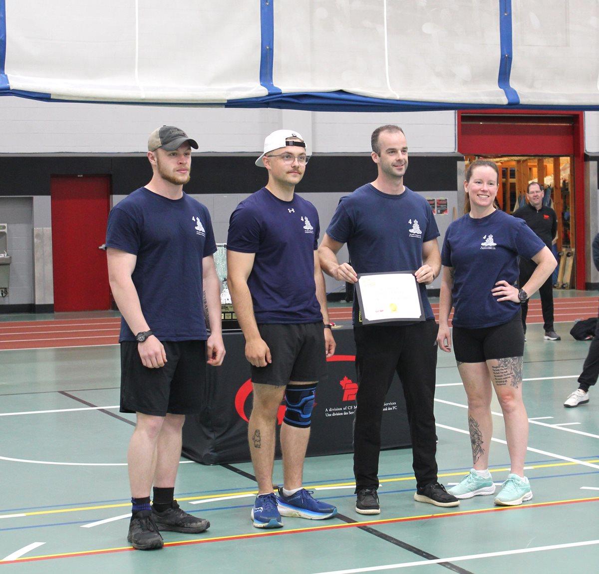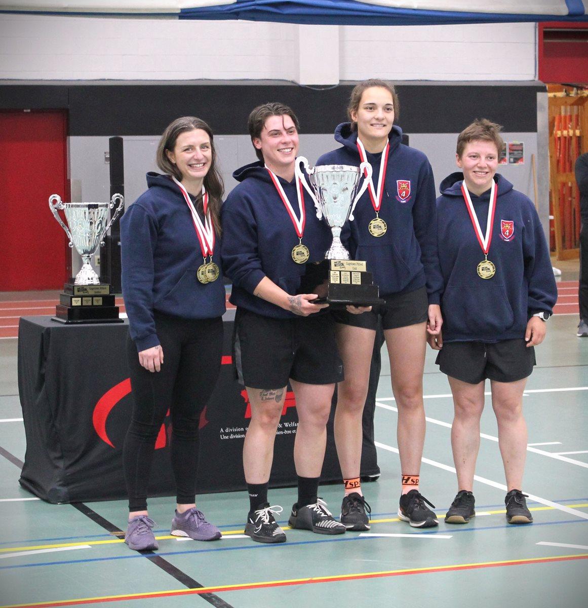 La compétition a également innové, puisque l'équipe entièrement féminine du 4ESR, composée de WO Courtney Burns, Capt Mikaela Hitchen, Cpl Sarah Duncan et MCpl Tristen Duernholz, a remporté la première place. L'équipe du 4 Reg les a suivies de près, se classant deuxième. L'équipe comprenait le Maj Genevieve Lachance, Capt Mason Lloyd, Gnr Xavier Jack et Gnr Philippe Tranchemontage. La troisième place a été remportée grâce à un effort incroyable par le CFSME Holdfast, composé de Avr Nathan Trent, Avr Papa Amadou Sene, Pte Sandrine Lavoie et 2Lt Pallavedeep Singh.