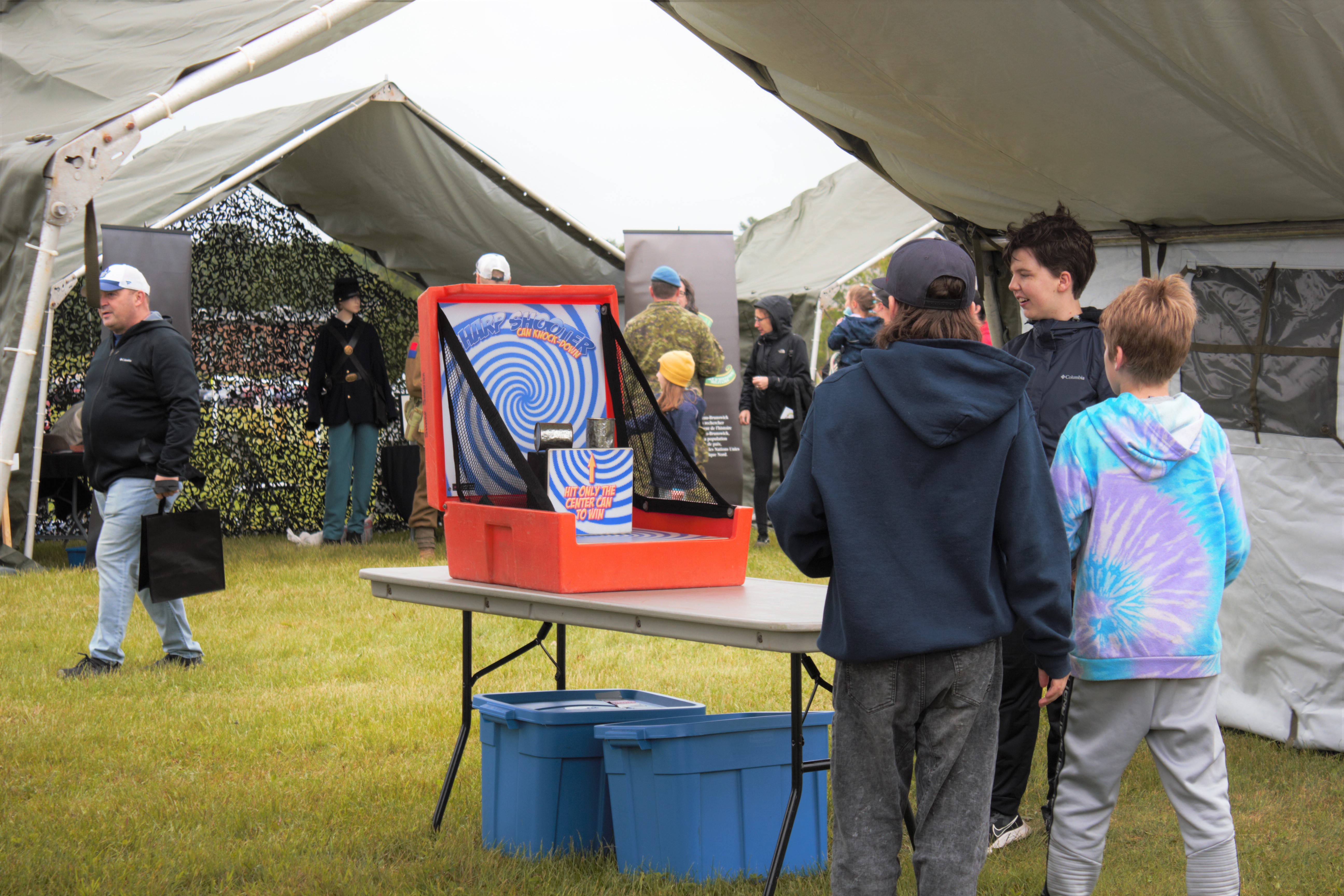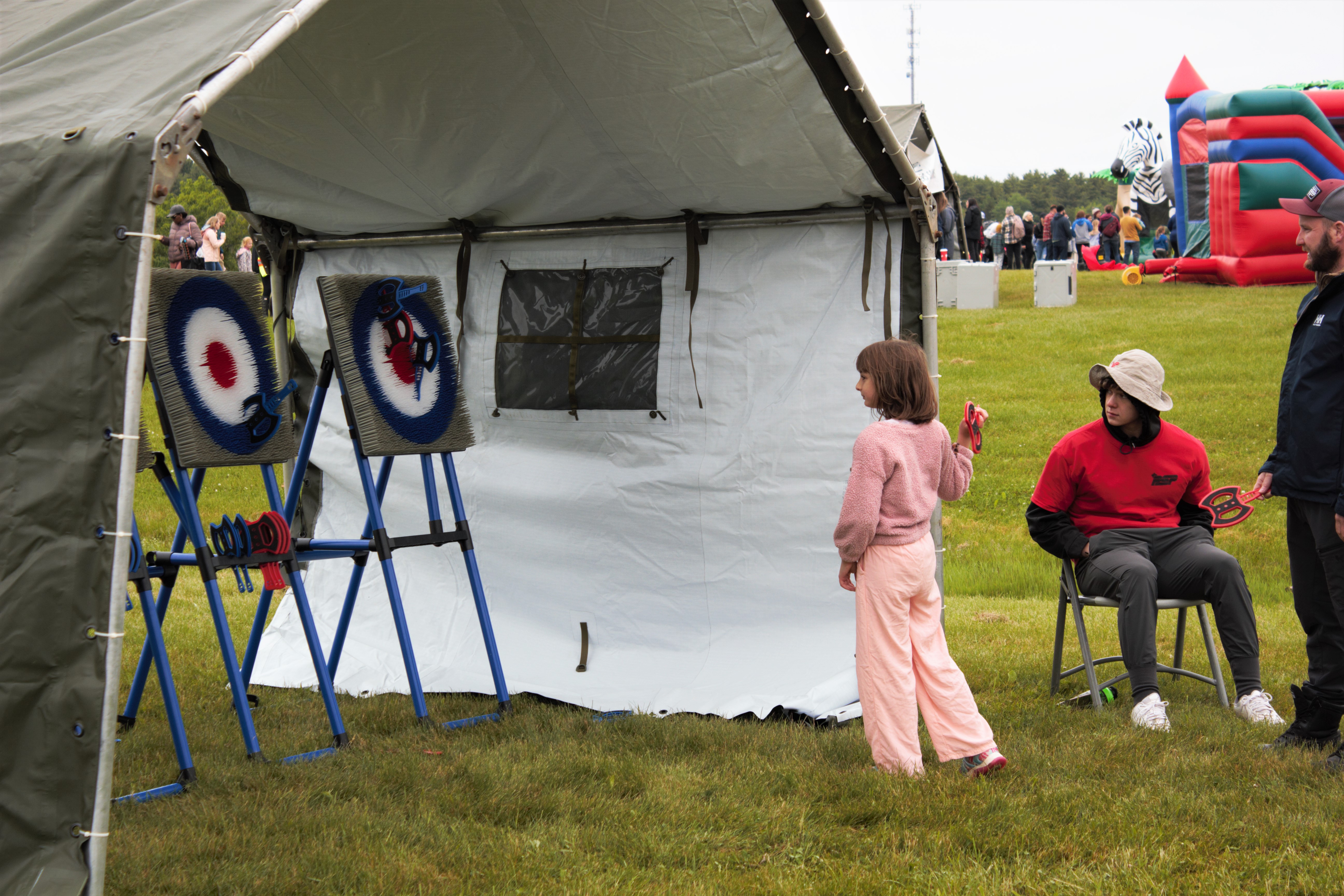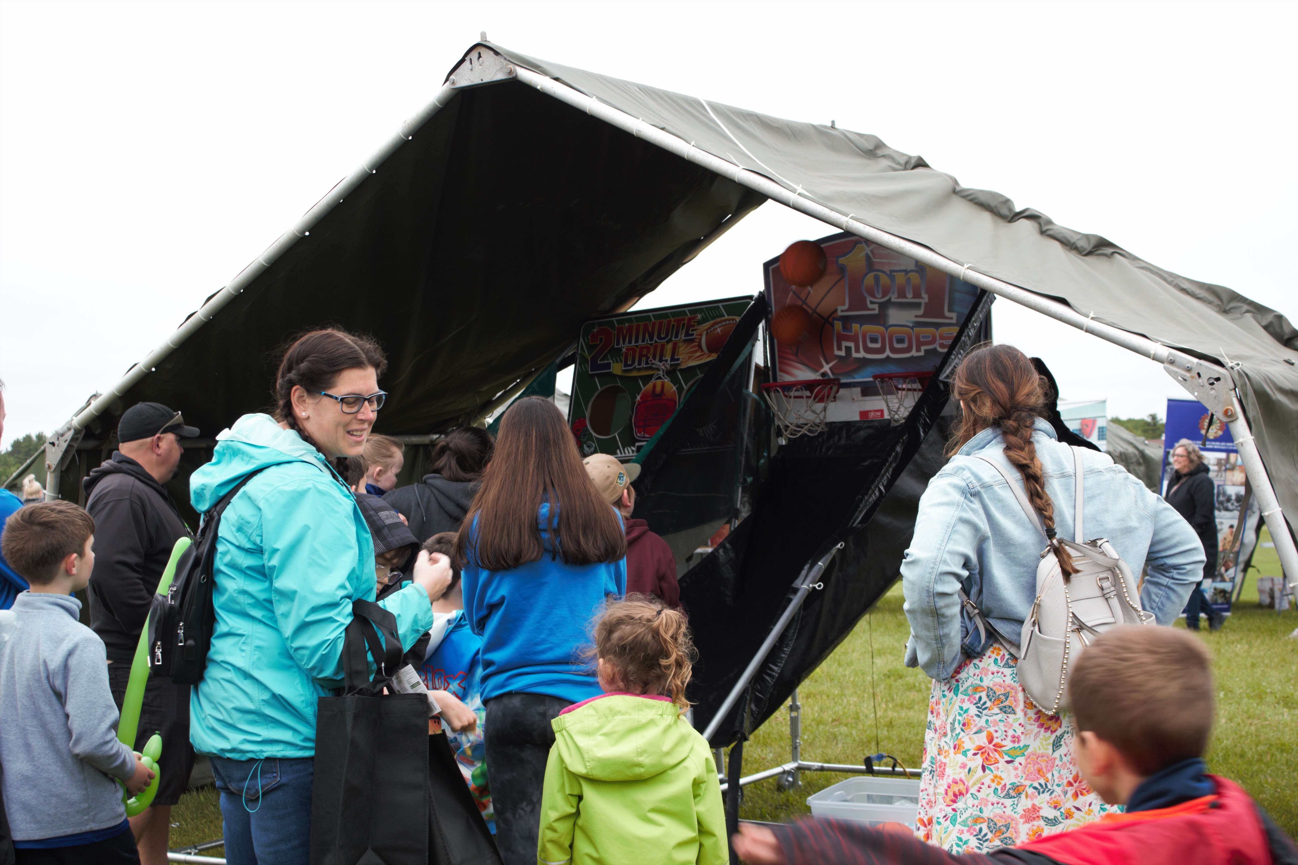 Le 17 juin 2023, sur les terrains de sport situés en face de la Centre de conditionnement physique (M2) du BS 5 Div CA Gagetown, a eu lieu la Journée des familles de la Base Gagetown 2023! Pour remercier nos membres militaires et les membres des communautés environnantes pour tout le soutien apporté au fil des ans. Cet événement était notre premier depuis 2019. Avec de nombreuses attractions amusantes, ce fut une journée remplie de plaisir, même si le temps était un peu frais. Avec des structures gonflables, des lanceurs de haches, des animaux en ballons, des tatouages à paillettes, un zoo pour enfants, des camions de nourriture, pour n'en citer que quelques-uns! Nous vous invitons à consulter notre galerie de photos de cet événement amusant. Nous sommes impatients de participer à l'événement de l'année prochaine!