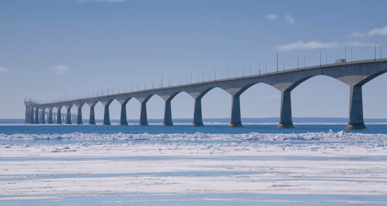 Parfois appelé " le lien fixe ", la construction du pont de la Confédération a commencé en 1993 et a été ouverte aux insulaires en mai 1997. Ce pont de 12,9 km, situé à Borden Carleton, à l'Î.-P.-É., relie l'Île au continent (plus précisément à Cape Jourmain, au Nouveau-Brunswick).
