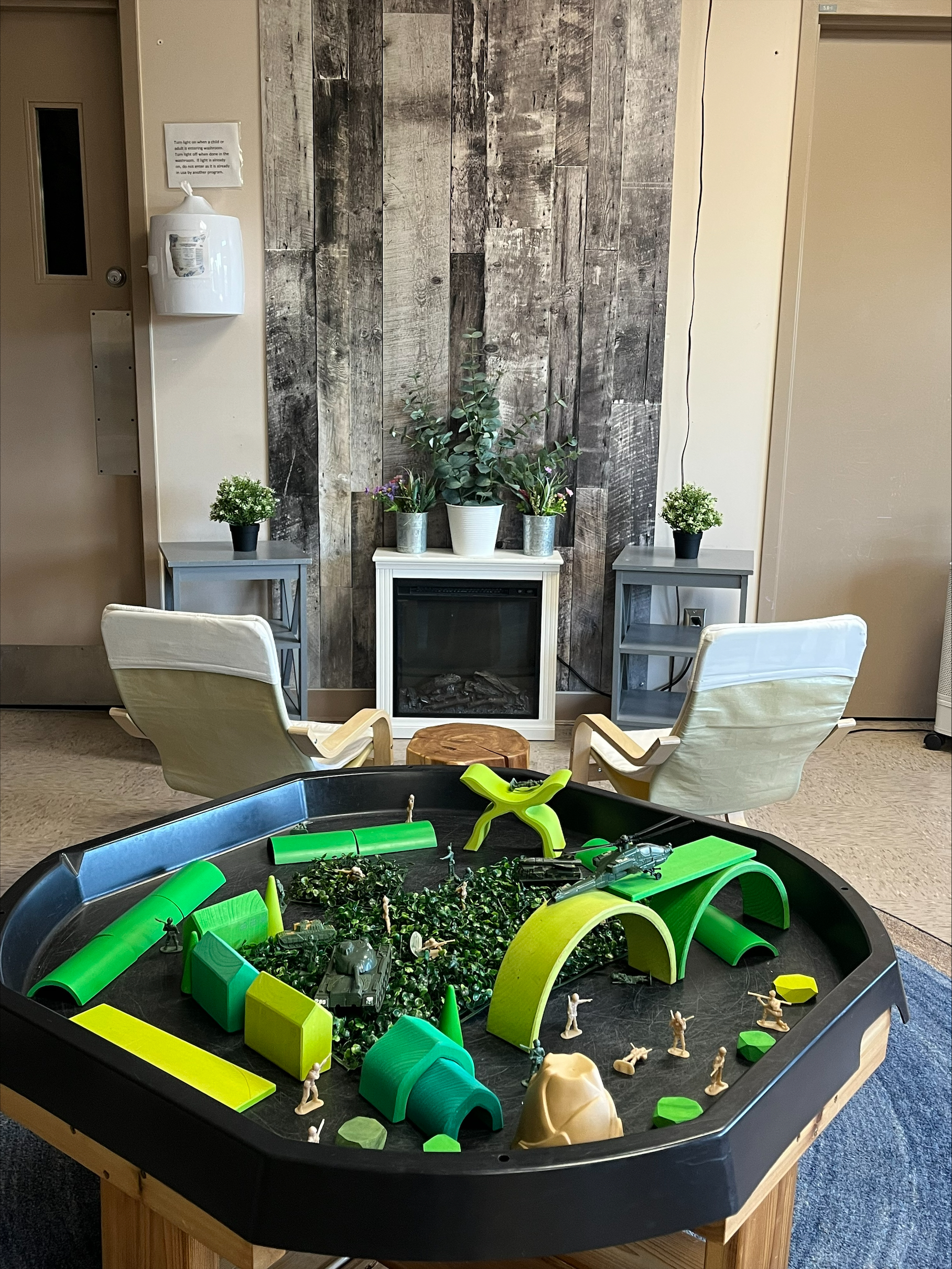 Ce programme agréé est destiné aux familles qui travaillent et qui ont des enfants âgés de 0 à 12 ans. Il est ouvert aux familles militaires et civiles. Il ne s'agit pas d'une garde à temps plein, mais d'un soutien aux familles qui ont besoin d'une garde temporaire pour se rendre au travail, assister à des rendez-vous, partir à la recherche d'un logement et pour les familles qui doivent faire face à une séparation liée au travail, comme les déploiements. Le personnel est entièrement composé d'éducateurs de la petite enfance.