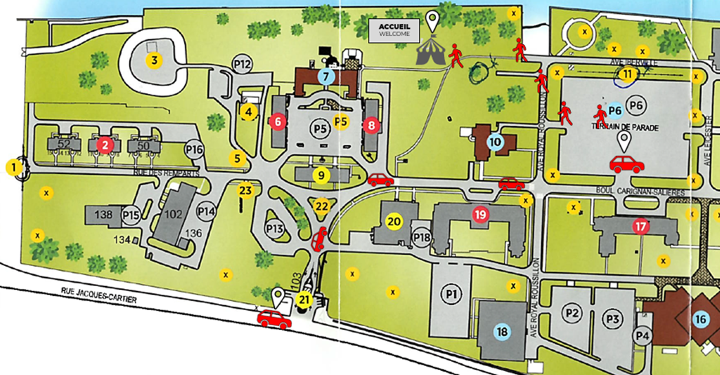 - Dirigez-vous sur la droite vers le stationnement du terrain de parade P6.