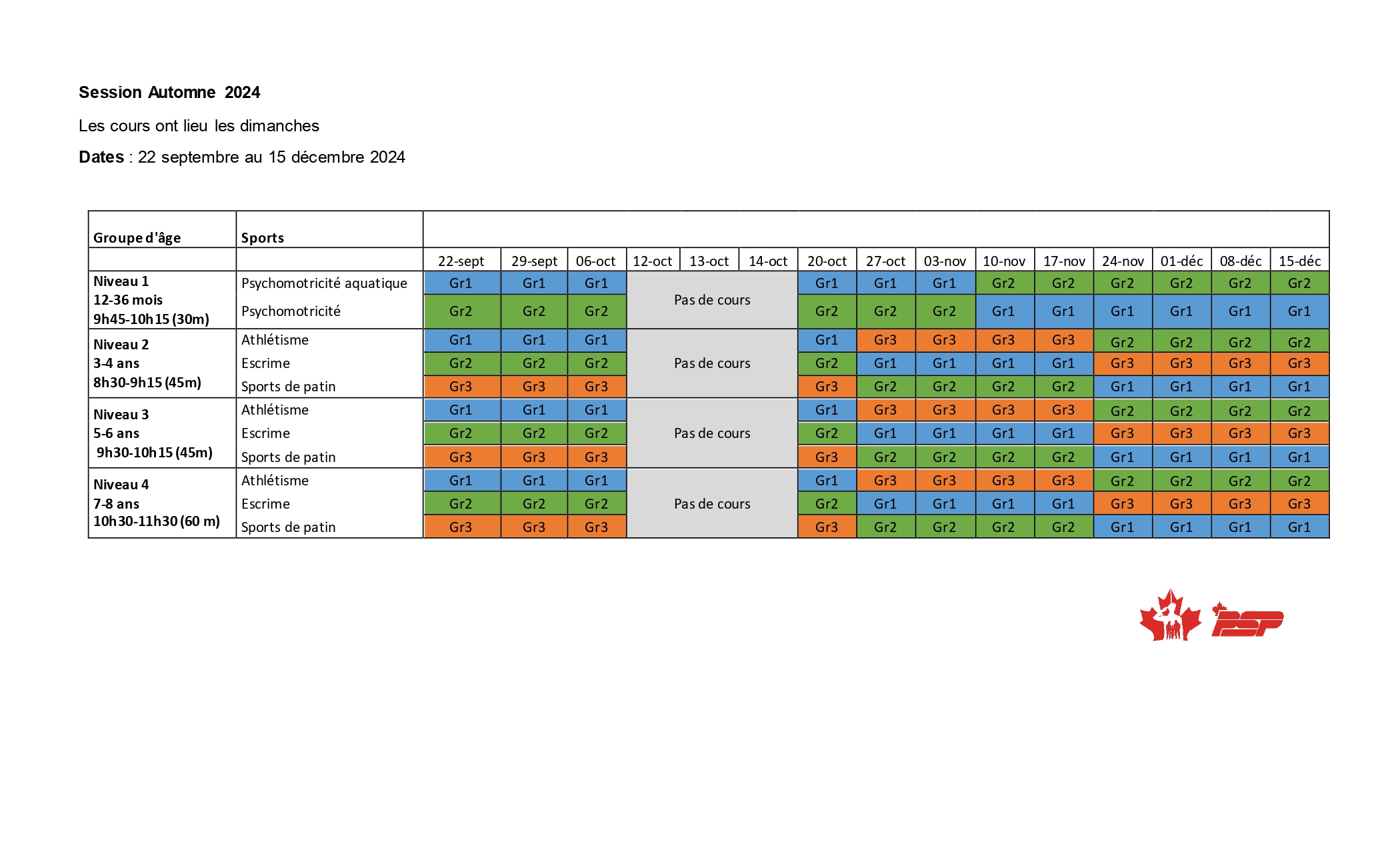 NOM CLIENTÈLE CODE HORAIRE *PSP *NPSP PSP NPSP Niveau 1 12-36 mois SPO2526161302GO